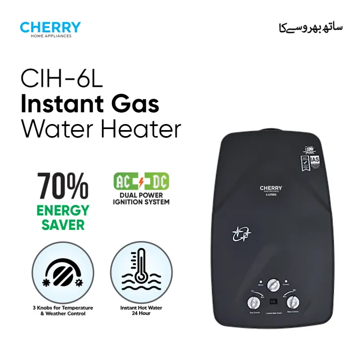 Instant Gas Water Heater 6 Liters – Dual Ignition (Battery + Adapter), Pure Copper Heat Chamber – LPG & Natural Gas