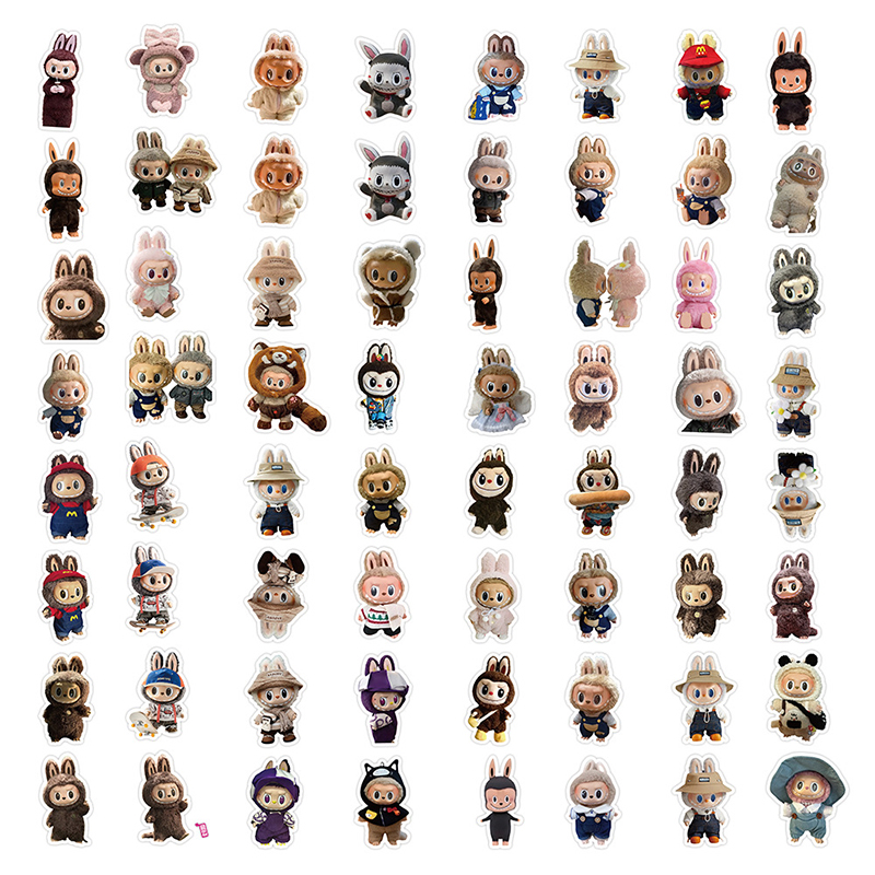 62Pcs Labubu Monster Cartoon Waterproof Stickers Cute Water Bottle Laptop Skateboard Decoration Stickers Creative Dolls Stickers