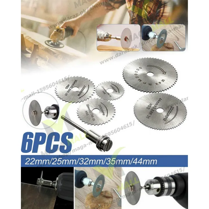 6Pcs Wheel Cutting Blades Set HSS Saw Disc for Dremell Drills and Rotary Tools