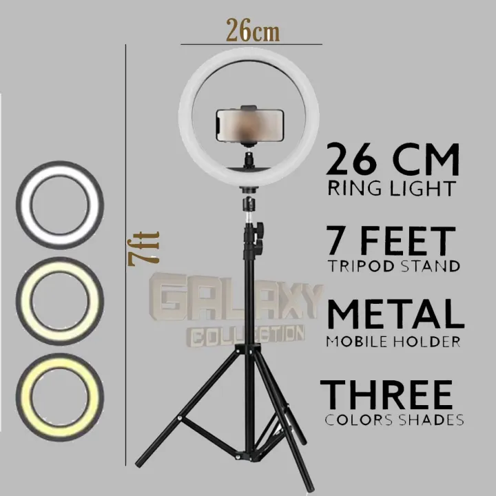 7 Feet Tripod Stand with 26 CM Selfie Ring Light & Mobile Phone Holder for Tiktok Videos Best Quality Metal Tripod Tiktok Light - Photography Kit