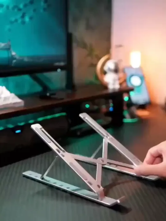 Aluminium Laptop Stand Silver & Black With Detachable Single & Dual Fan Stand For Laptop - 7 Gear To Adjust Height & Anti Slip Rubber Grip - Full Metal Body Adjustable Portable And Foldable Laptop Stand