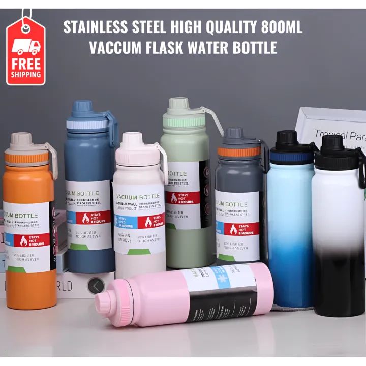 Stainless Steel bottles Double Wall Vaccum Flask Bottles 800ml Water Bottles Stainless Steel Sports Water Bottle For Hot & Cold Drinks Durable Gym Bottle for Outdoor, School, Office Use