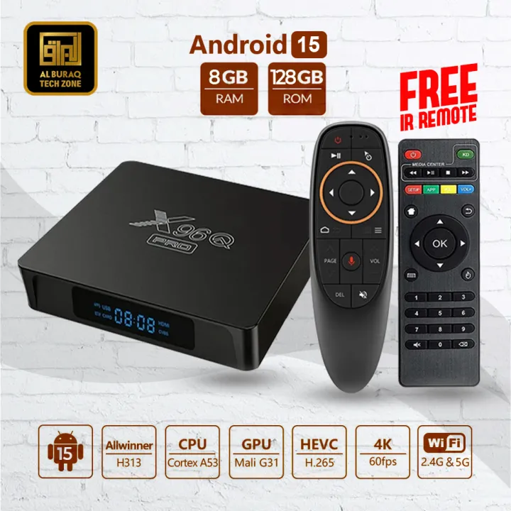 Android TV Box - X96Q Pro 8GB RAM / 128GB ROM - Smart TV Box - Android 15 With G10S Voice Remote & FREE Extra Simple Remote - Free Lifetime IPTV Package Including Live TV Channels , Movies , Webseries - Android TV Box By Al-Buraq Tech Zone