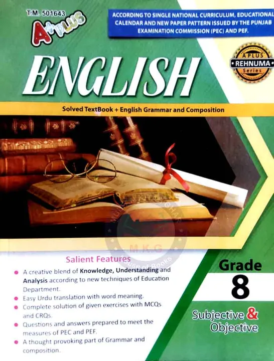A Plus English for Grade 8 Solved Textbook, English Grammar and Composition (Rehnuma Series)
