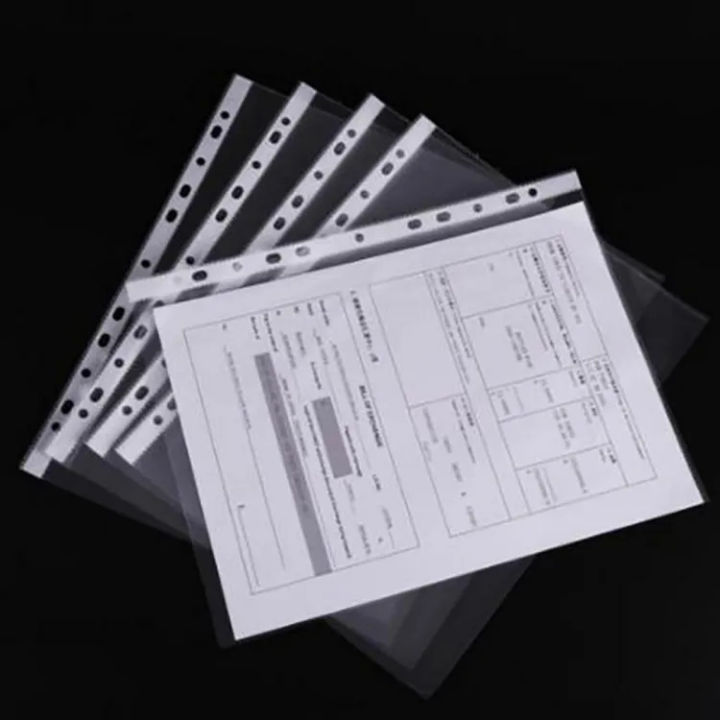 A4 clear plastic punched pockets file paper protector / paper wallets / sleeves 100 Pcs 0.03mm