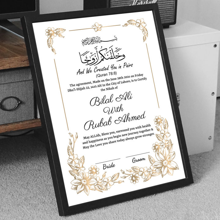A4 Size Customized Nikah Certificate Digital High Quality Resolution HD Print With Premium Quality Frame