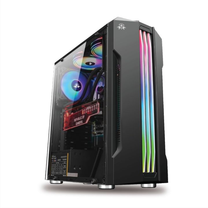 AA Tiger Hunting Black ATX Gaming PC Case with 3 RGB Fans | Micro ATX PC Casing | Low Price Gaming Case with Fans