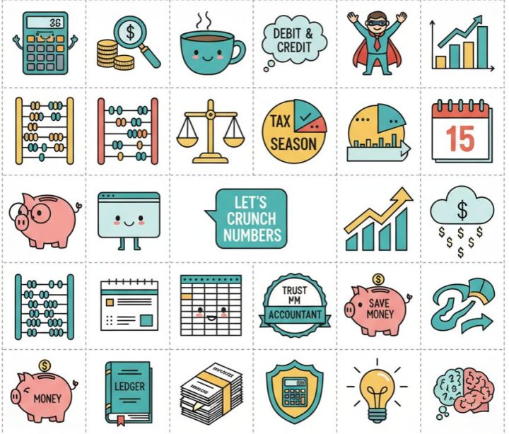Accounting & Finance Sticker Planner Cute Kawaii Accountant Stickers Tax Season & Budgeting Doodles Funny CPA & Bookkeeper Stationery Office Life Planner Decals Laptop & Mobile Back Cover Sticker 2Inchx2Inch Each Size Pack Of 29 Sticker