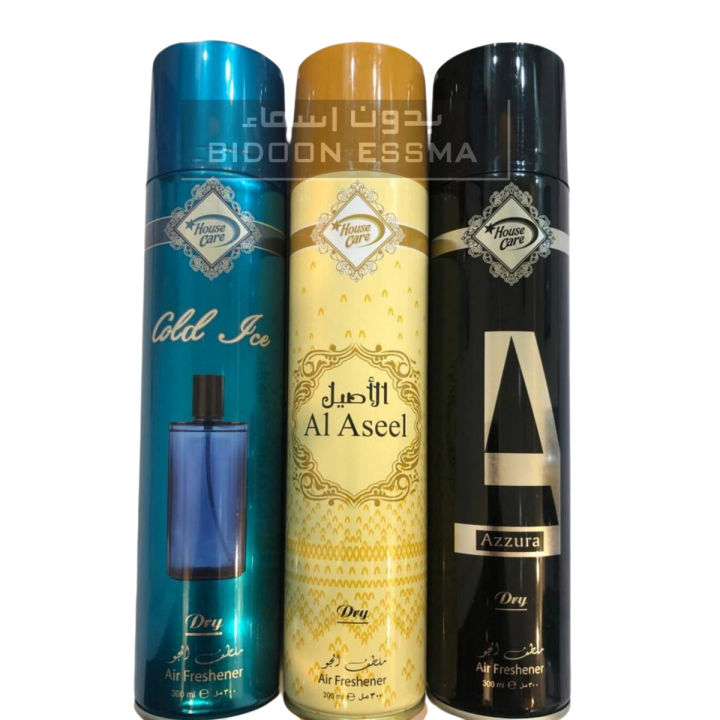 Air Freshener Azura | Al-Aseel | Cold Ice | Pack of 3 300ml Big Bottle House Care Room Spray Imported High Quality Value Budget Pack Deal Offer Fresh Scent Fragrance | Wash Room Bath Room Easy to use | Office Room | Car Air Freshener | Hotel Room|Gift him