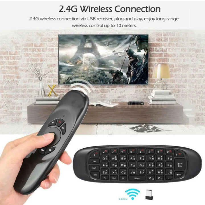 Air Mouse C120 Wireless Keyboard & Fly Air Mouse / Rechargeable / Remote Control / Built in Battery For ( Android, TV, PC, Laptop ).