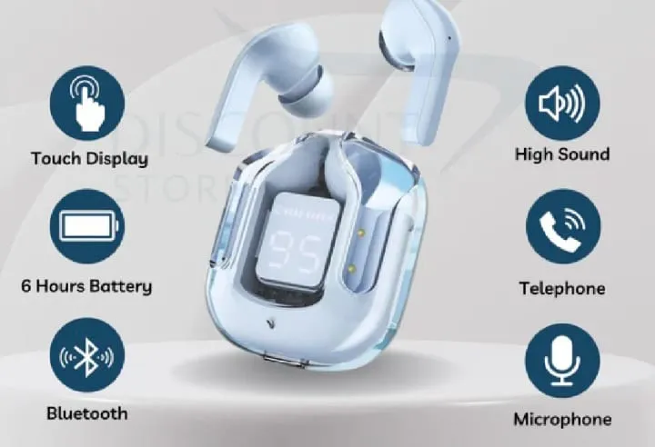 Air31 Wireless Headphones LED Power Digital Display Stereo Sound Bluetooth | compatible 5.3 Earphones for Sports Working | Transparent Digital Display | A31 Wireless Bluetooth Earbuds