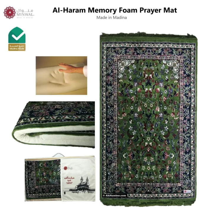 Al Haram Memory Foam Prayer Mat Green Made in Madina Janamaz/ Jai Namaz
