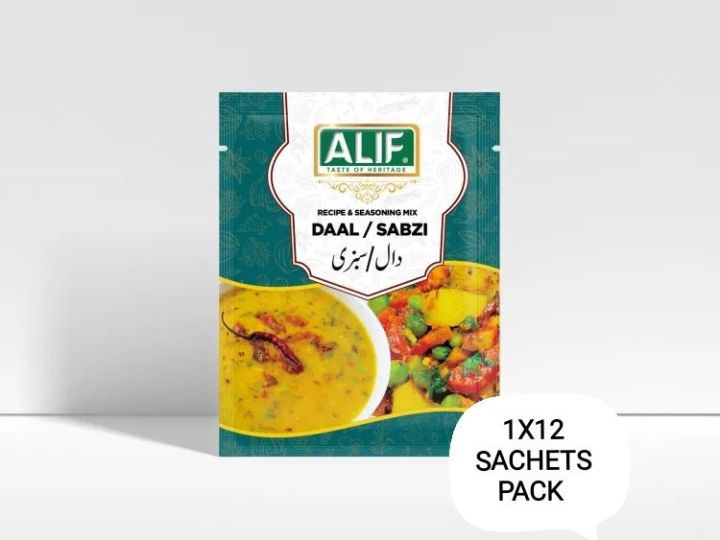 Alif Daal Sabzi masala 1x12 sachets "Natural & Organic" Alif Food Masala