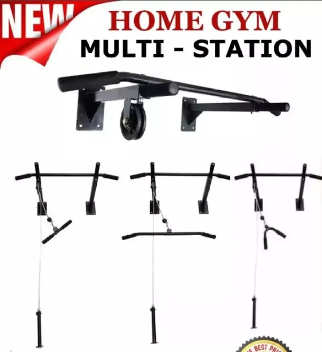 All in One Multi Exercises Pull Up Bar Chin Up Bar Boxing bag Hook Lats Pulley Cable Arm Blaster Bicep Tricep Bar Wrist Roller For Complete Home Gym
