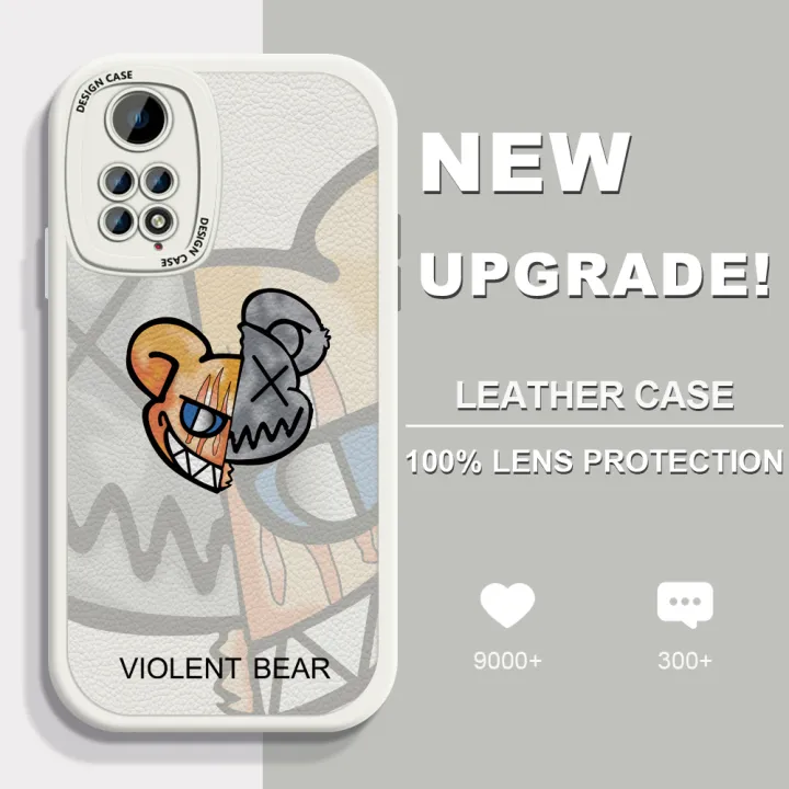 AMORVOR for Redmi Note 11 / Note 11S Back Cover Fashion Style Bear PU Leather Case Soft Silicone Edge Phone Cases