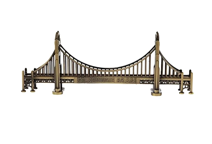 Antique Metal USA Souvenir - Golden Gate Bridge Decoration - Famous Landmark Collectibles San Francisco Metal miniature statue of the Golden Gate Bridge.