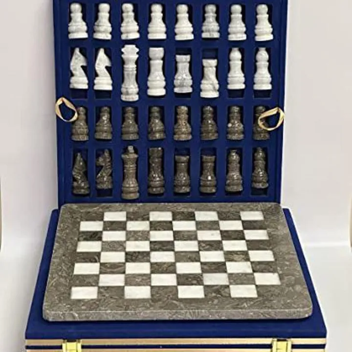 ApexGlobal Large Handmade Full Chess Set, Grey and White, Marble Chess Board, 32 Chess Game Pieces, Unique Home décor. Handcrafted Tournament Chess Board - 2 Players.