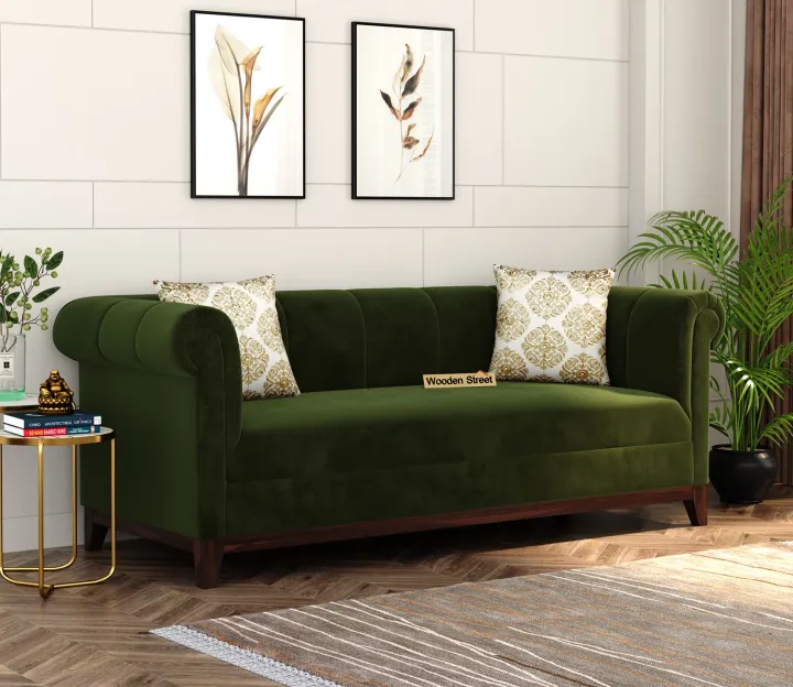 Arbor 3 Seater Sofa (Velvet, Dark Olive Green)