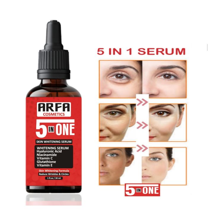 Arfa Cosmetics 5IN1 Serum Gulatathione Brighten Skin Tone Removes Dead Skin Hyaluronic Vitamin c Serum Whitening Serum Skin Care Serum30Ml
