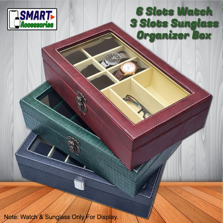 Artificial Leather Watch and Sunglass Organizer Box 6 Watch 3 Sunglass Organiser Box Smart Watch organizer case