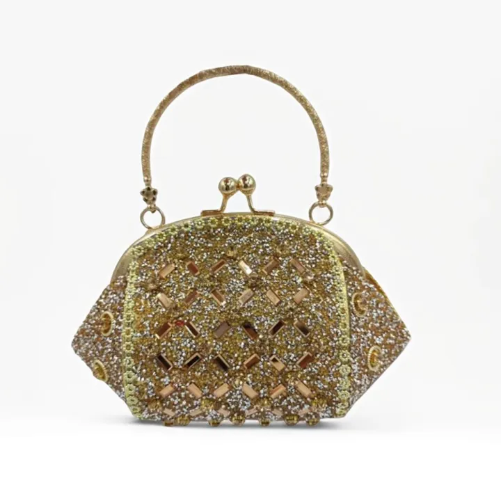 ASC Collection New Design Bridal Clutch Bag with Metal Frame and Fresh Stones in 3 Colors: Silver, Golden, and More