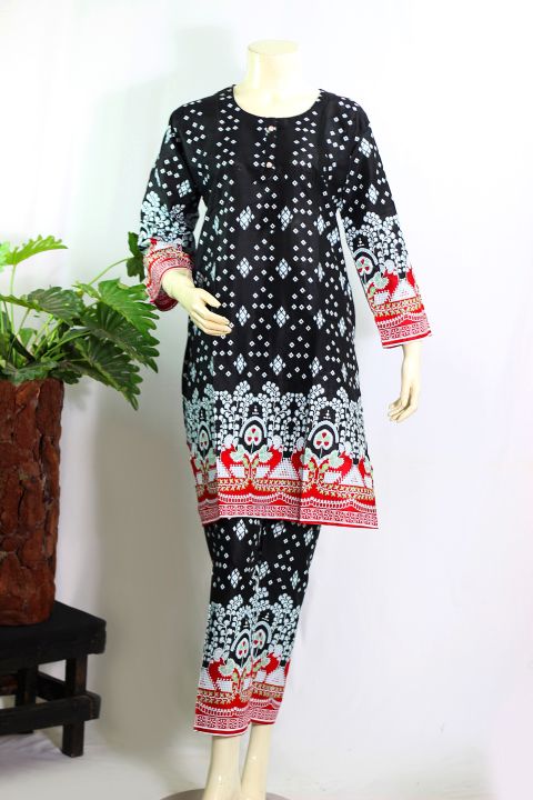 Auditors®️ Lawn Dress For Girls - Chunnari Printed 2 PC Stitched Shirt & Trouser - Black Colour - Pure Lawn Fabric - Code: AWTPC116