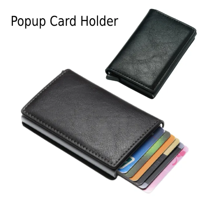 Automatic Metal Pop Up Card Holder Wallet for men and Women Slim PU Leather Wallet for men