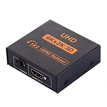 Axotic UHD HDMI Splitter, Powered Latest UHD 4Kx2K 3D 1 in 2 out 1X2 2 Port 1080P V1.4 Support 4K / 2K and 3D Resolution -1 Source To 2 Display