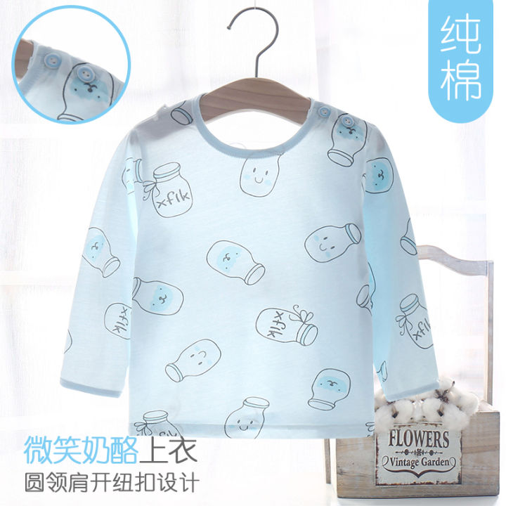 Baby pajamas baby summer ultra-thin cotton long-sleeved T-shirt top children's air-conditioning clothing boys and girls spring and autumn