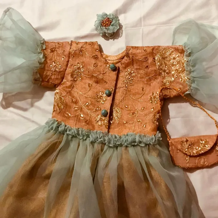 Baby suit baby dress for party wear fancy organza banarsi suit for baby girl Ak25 for women