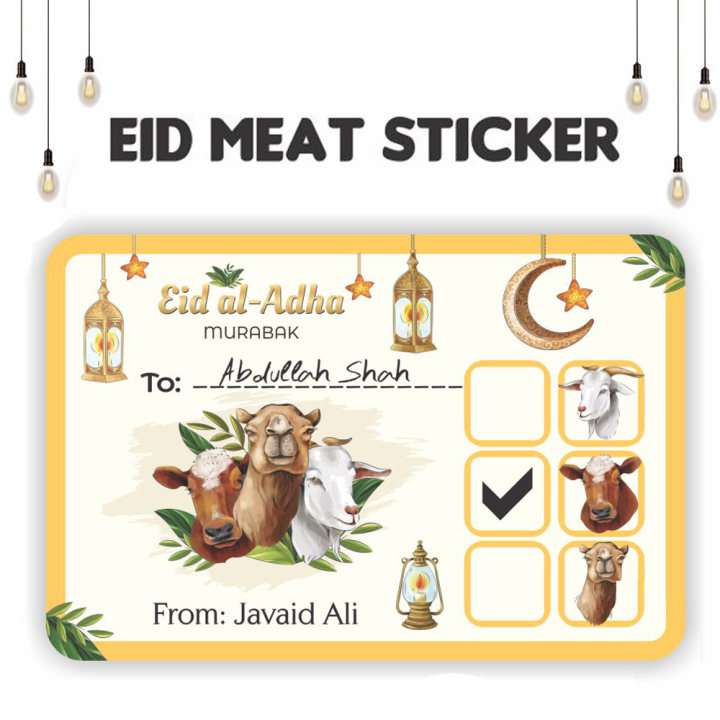Bakra Eid Stickers Eid-ul-Adha Mubarak Stickers Printed Stickers in 3 x 2 Inches for Meat Distribution