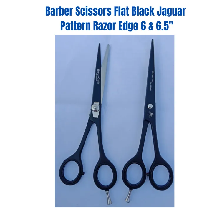 Barber Scissors Flat Black jaguar pattern Razor Edge 6 & 6.5 "