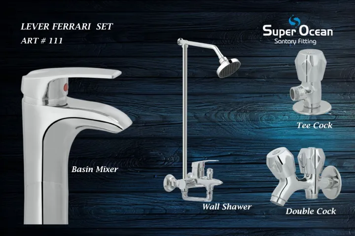 Bathroom Set Shower Set Wall Mounted Complete Bathroom Fitting 100% Brass Chrome Super Ocean Sanitary fittings Lever FBS-111 Set