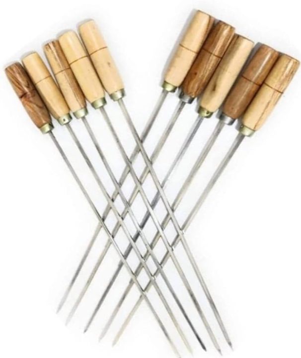 BBQ Sticks Pack Of 6,12 Bar B Q Stick With Wooden Handle Bbq Stick Flat Stick Chicken Tikka Stick Coal Stick Handle Stick