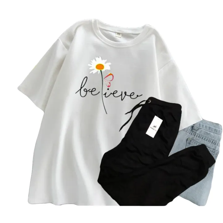 BELIEVE Tracksuit for Girls & Women printed half Sleeve T-Shirt & Trouser for Summer Collection Elegant Trendy Wear