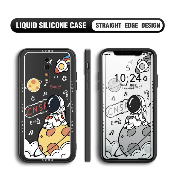 BILI for OPPO Reno Z Back Cover Little Astronaut Sit In Planet Multicolor Liquid Silicone Phone Case Soft Square Lens Protection Phone Cases