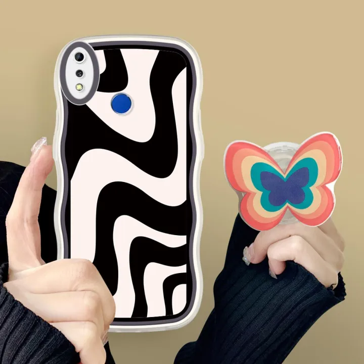 BILI for Realme 3 Back Cover With Free Ring Holder Multicolor Wavy Soft Transparent Colorful Wavy Phone Cases
