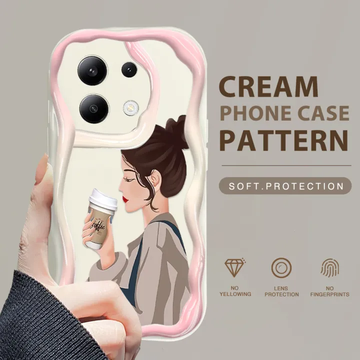 BILI for Redmi Note 13 4G Back Cover Elegant Girl Pattern Cream Texture Wavy Soft Silicone Mobile Phone Covers