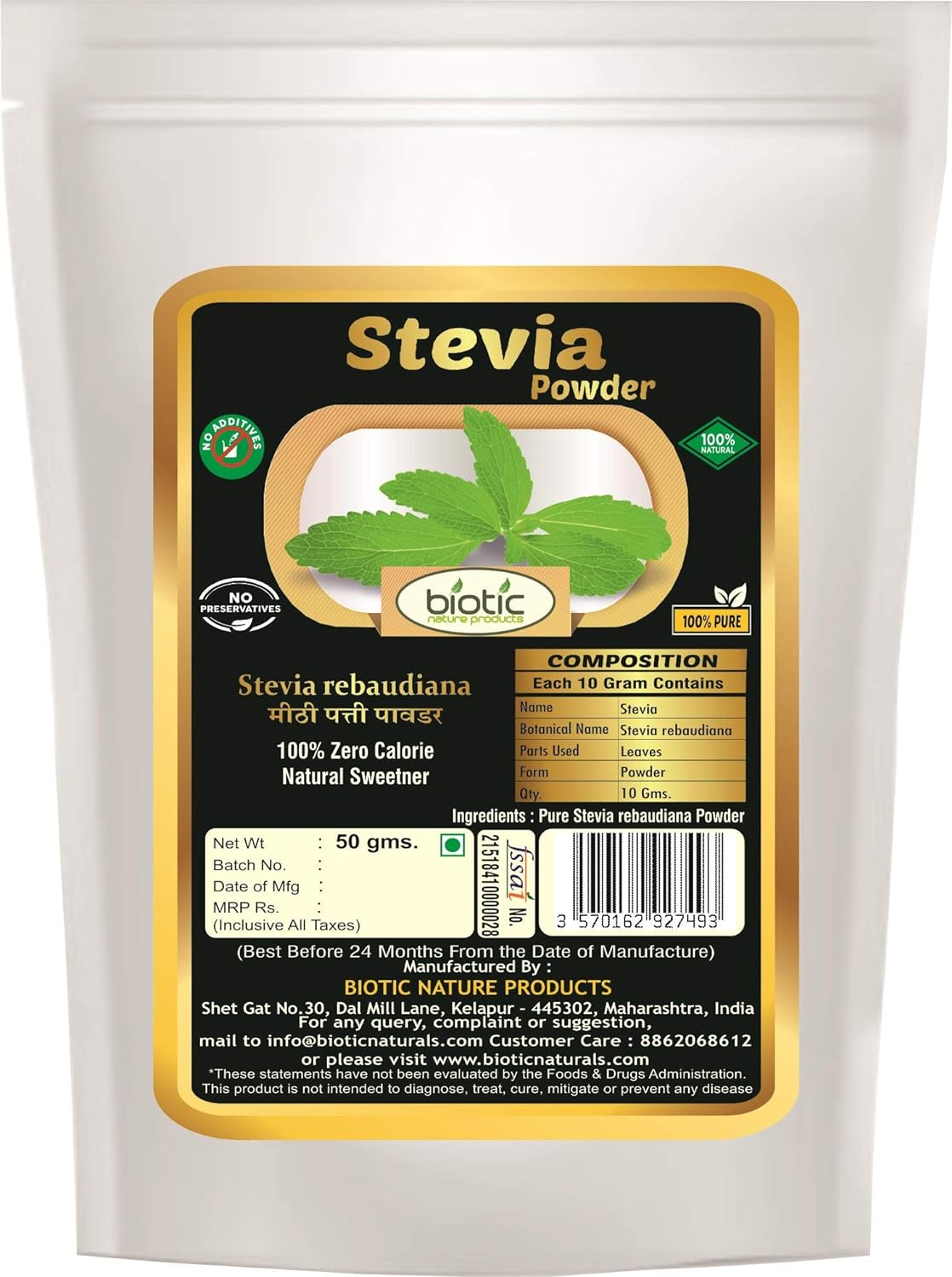 Biotic Stevia Powder, Natural Sweetner (Meethi Patti) Stevia Sugar - 50 g