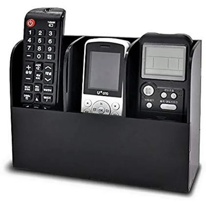 Black Acrylic TV AC Remote Control Holder 3 Compartments