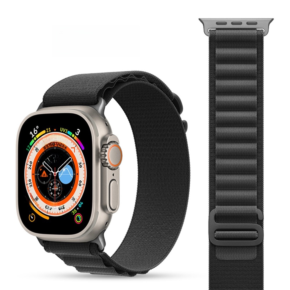 Black Alpine Loop Smart Watch Strap Active A-port Dry Fit Water Proof Pure Fabric Nylon Band Free Size Adjustable Metal G-Hook