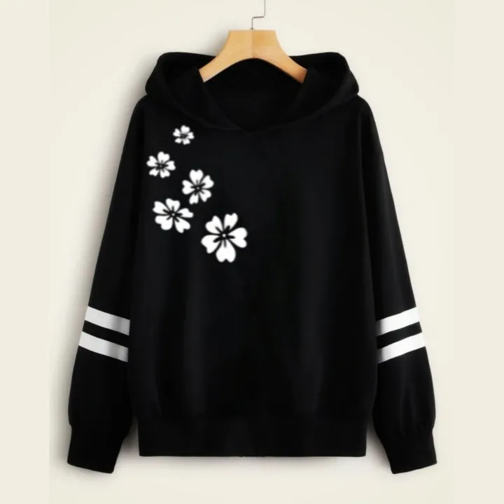 Black Double Stripe Printed Winter Hoodies For Girls & Womens