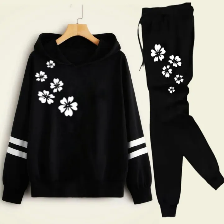 Black Double Stripe Printed Winter Tracksuit For Girls & Womens - Soft & Comfy Hoodies For Girls