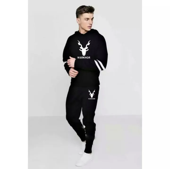Black Double Stripe Printed Winter Tracksuit For Men & Boys