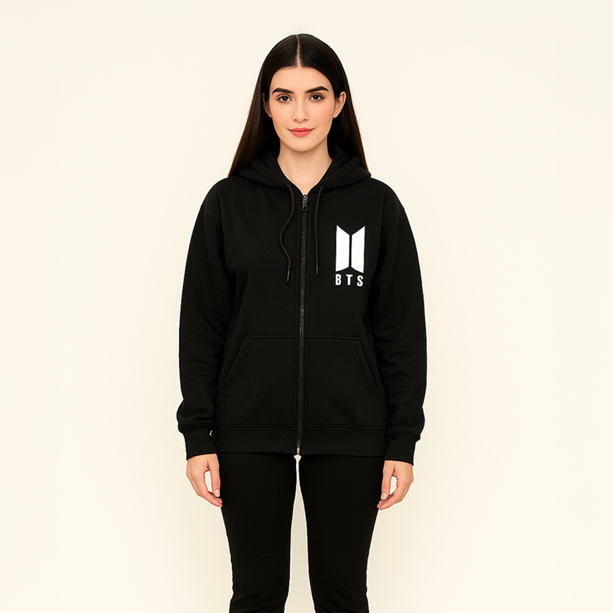 Black Pull Over Zipper Bts book Logo In Front Printed Fleece Hoodies For BTS fans Women n Girls