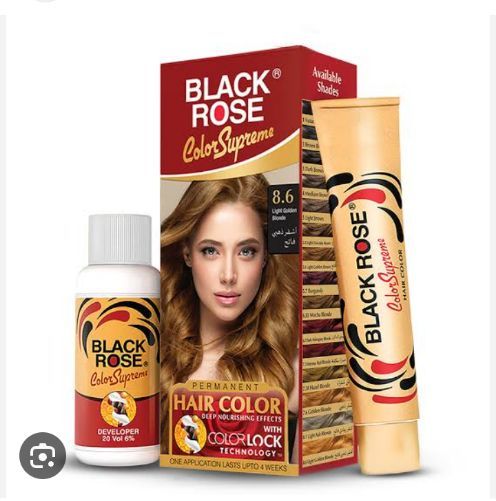 Black Rose Color supreme permanent hair color deep nourishing effect with color lock technology one application lasts upto 4 weeks Number 8.6 color Light Golden Blonde