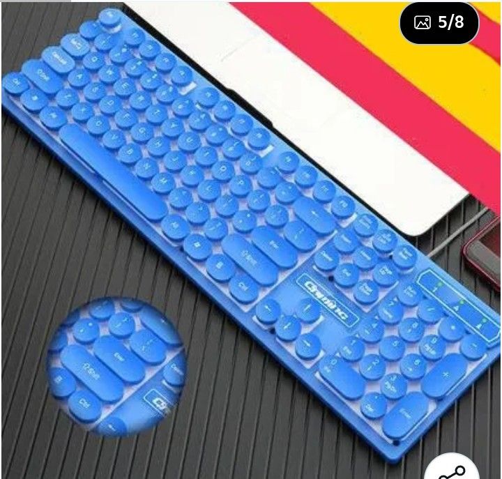 Blue Round Keys Normal Keyboard - Non Mechanical No LED