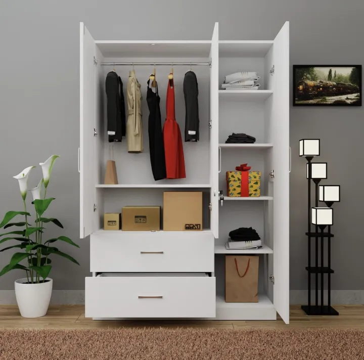 BM-Furniture Wooden Almirah for Clothes,Door for Bedroom, 3 Door Wardrobe with Drawer & Hanging Space (Frosty White - D16 inch x L40inch x H66inch)