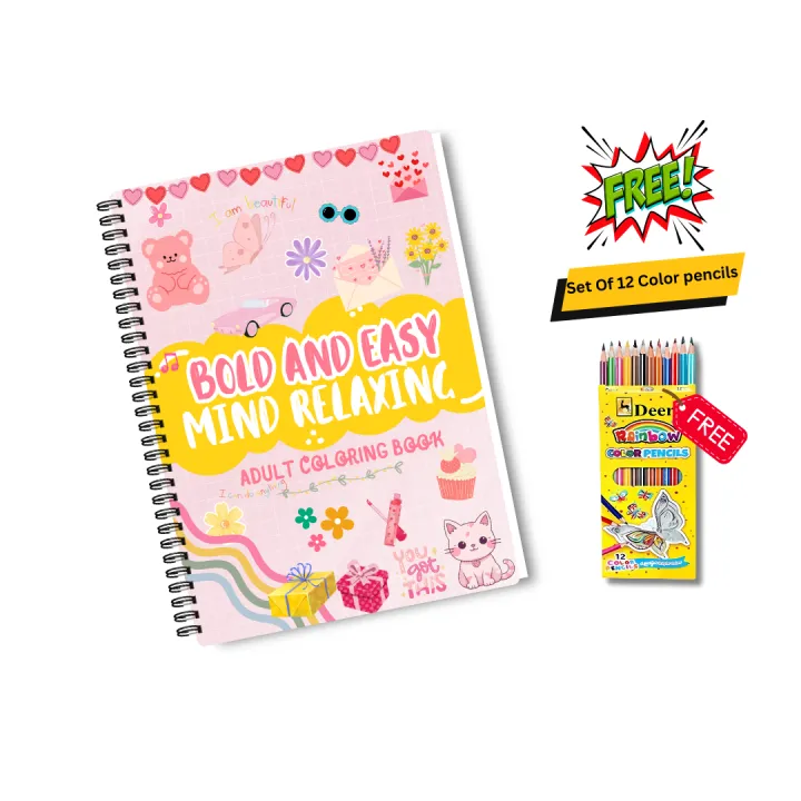 Bold And Easy Mind Relaxing Adult Coloring Book With Free Gift