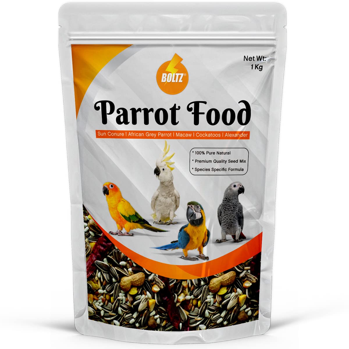 Boltz Parrot Food 1Kg for Big Parrot,African Grey Parrot,Sun Conure,Macaw,Lovebird and Alexander - All Life Stages Mix Seeds,1 Kg pack